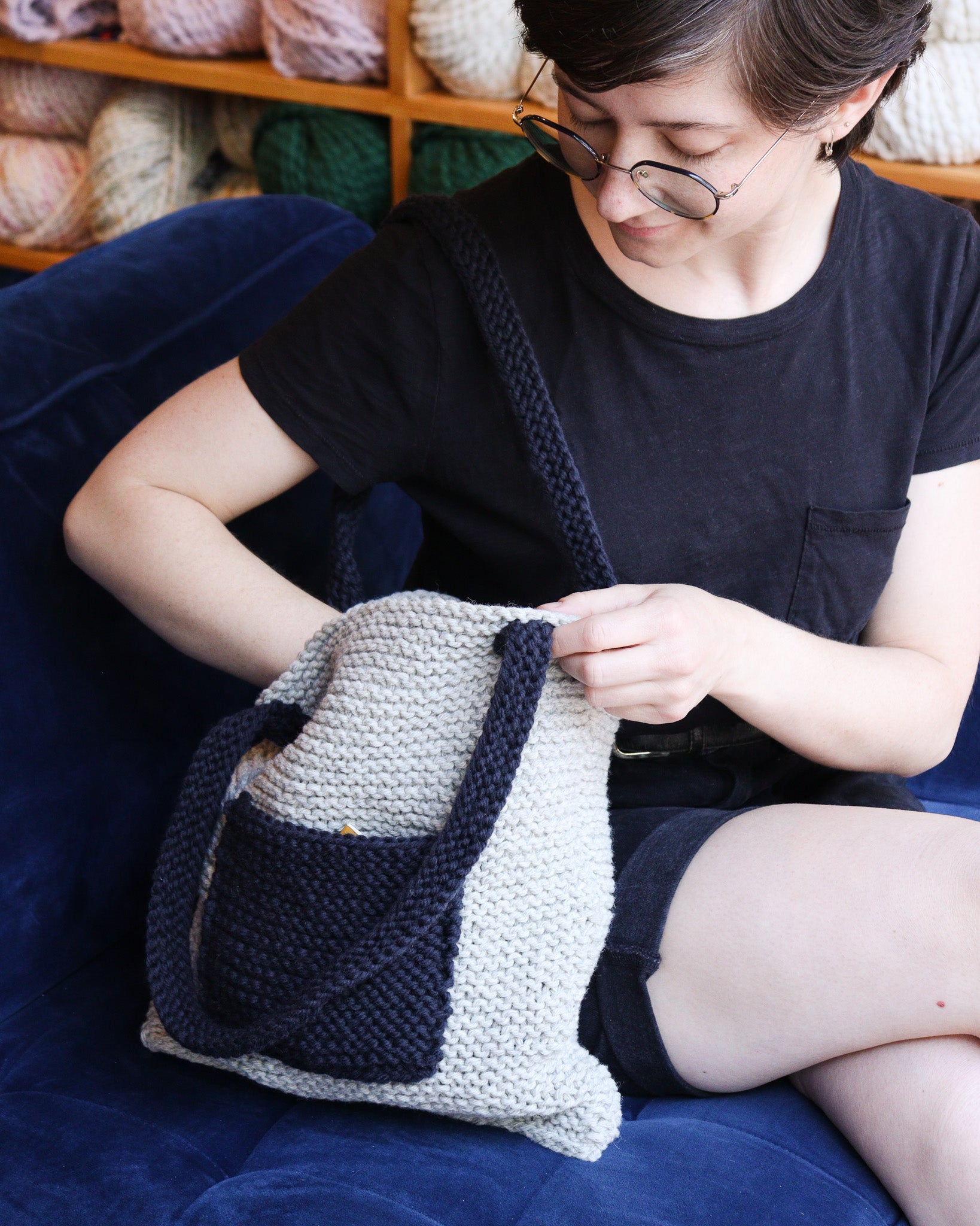 This truly is the easiest bag you could knit, it's made of only rectangles! It's a great first project for beginner knitters.